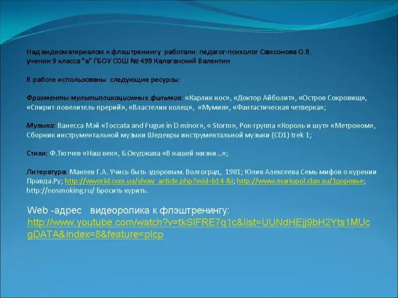 1. Обучающая: наглядно показать негативные процессы, происходящие в организме человека под воздействием табака (показ видеоролика к флэштренингу "Твоя жизнь в твоих руках").