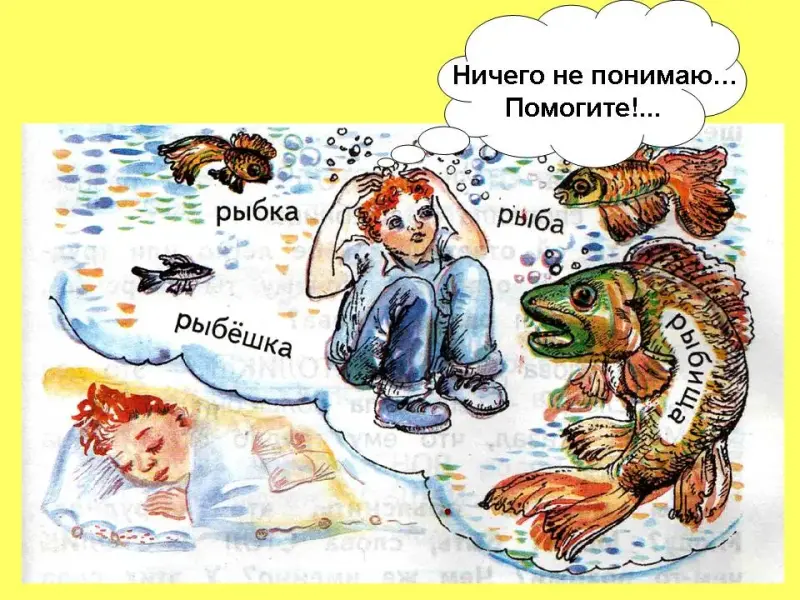 Слайд 1: Начало интриги, проблема, которую Миша не может решить самостоятельно: не могу отличить, где ЭТО слово, а где ФОРМЫ этого слова. Условия, которые предлагает Анишит Йокоповна (сквозной персонаж УМК «Перспективная начальная школа»), по сути дела формы работы на уроке. Миша вместе с ребятами принимает условия волшебницы.