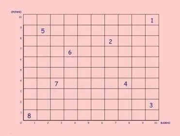 Когда все цели обозначены на графике, разделите этот квадрат на 4 равные части, проведя вертикальную и горизонтальную линии через значения, соответствующие «5»: