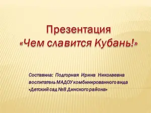 Беседа по слайдам презентации «Чем славиться Кубань!»