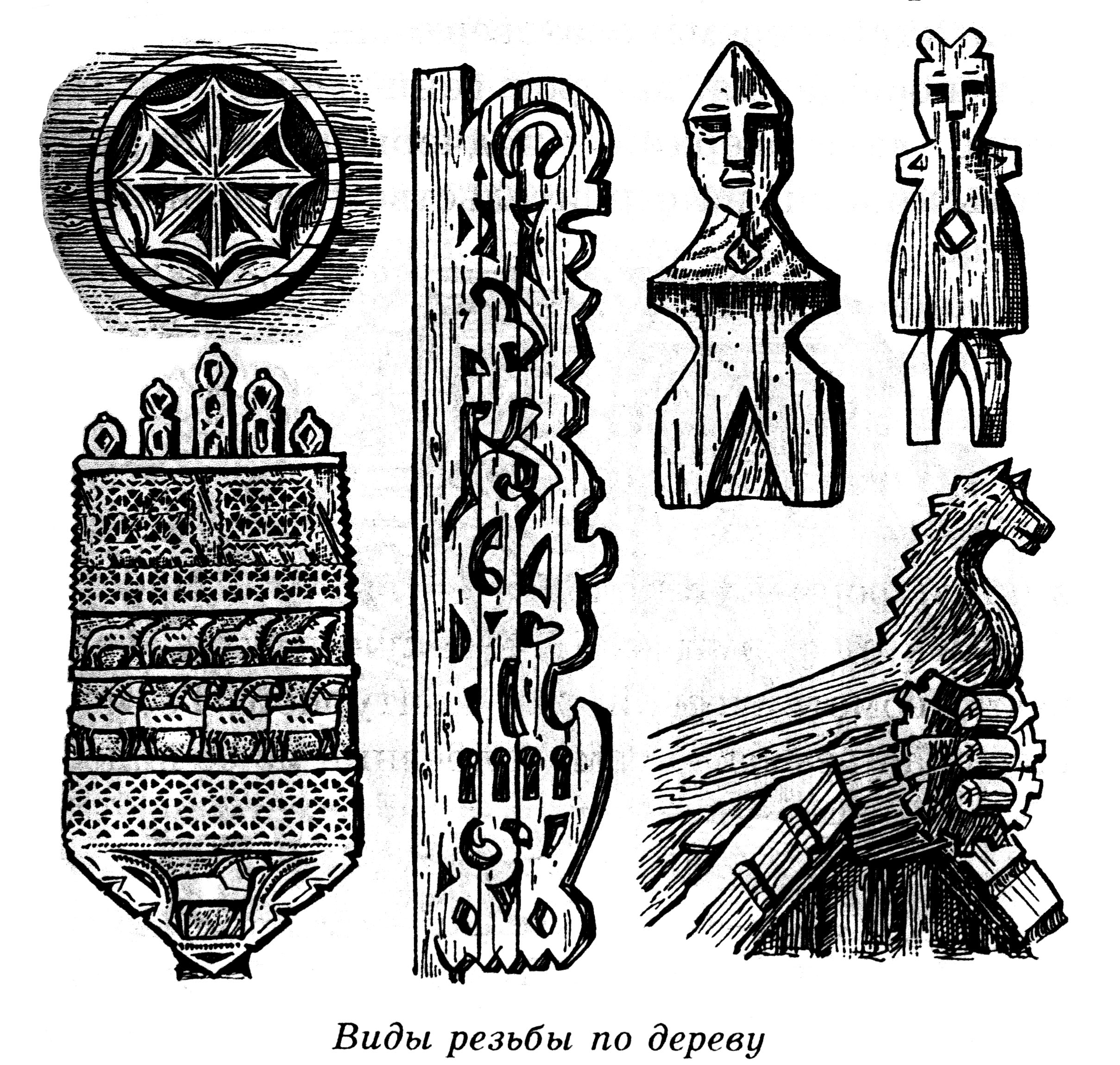 - Работа над декоративной композицией на тему древних образов в резьбе и росписи по дереву, в орнаментах.