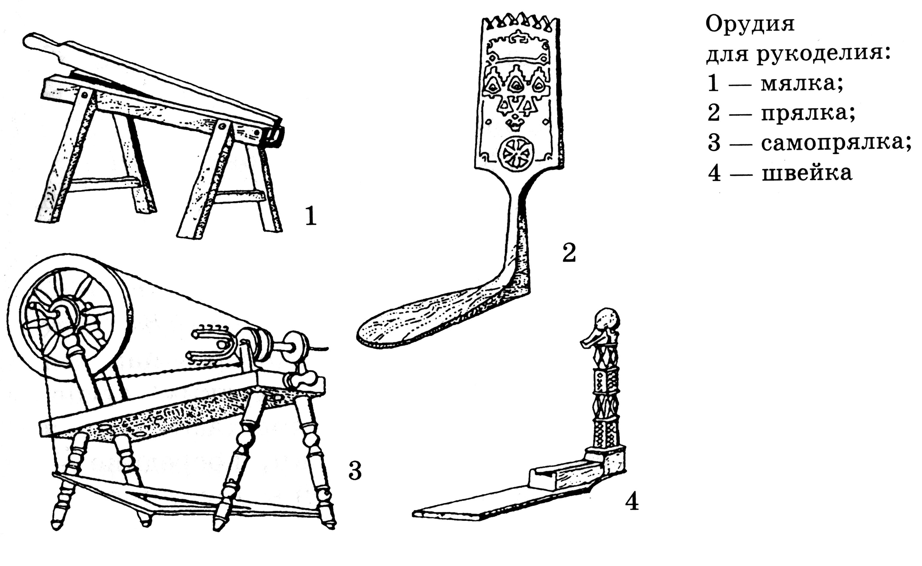 - Коллективная работа "В русской избе". Выразительная форма предметов крестьянского быта. Посуда. Прялки.