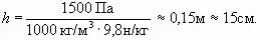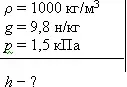 Задача: В фильтр для очистки воды налита вода. Какова высота емкости для воды, если давление в сосуде 1,5 кПа?