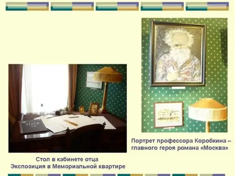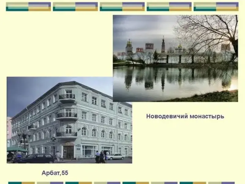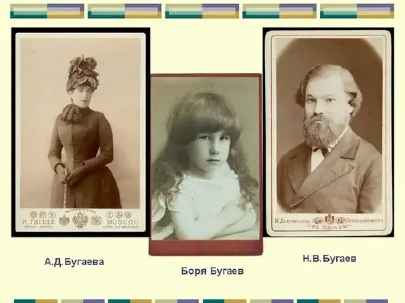 1). Семья Бугаевых.Сегодня мы познакомимся с жизнью и творчеством теоретика младосимволизма, творчеством поэта и писателя Андрея Белого (1880-1932). (Слайд 3). Настоящее его имя Борис Николаевич Бугаев. Он вырос в семье профессора Московского университета, декана физико-математического факультета Николая Васильевича Бугаева. (Слайд 4). Они арендовали квартиру в доме почетного гражданина, приват-доцента Московского университета Рахманова на Арбате, где сейчас находится музей-квартира Пушкина. Здесь бывала вся профессорская Москва. Николай Васильевич интересовался и философией, и психологией, историей и политикой, увлекался шахматами, был яростным спорщиком, сочинял шутливые стихи и даже написал либретто оперы "Будда". К Бугаеву заходил даже Лев Толстой. Профессорский мир детства во многом определил дальнейшую судьбу Бори. Он учился в знаменитой частной гимназии Льва Ивановича Поливанова, а потом поступил на естественное отделение физико-математического факультета Московского университета. Начало отцовское - интеллектуальное, начало матери - лирическое. Мать с отцом были необычной парой. "…чувствами я разрывался между ними. Трудно найти двух людей, столь противоположных, как родители…сила мысли и ураганы противоречивых чувств…безвольный в быте муж науки… и переполняющая весь мир собою, смехом, плачем, музыкой, шалостями и капризами мать…Я был цепями, сковавшими их…" (А.Белый. На рубеже двух столетий). Александра Дмитриевна, урожденная Егорова, была натурой эмоциональной, порывистой, артистичной, играла на рояле. Недаром потом Борис напишет художественные произведения с необычным ритмическим строем, которые назовет "симфониями". Увлечение поэзией и эмоциональность Бори - от матери. И восприятие прекрасного тоже. (Слайд 5). С балкона столовой, обращенной окнами в Денежный переулок, юный Боря Бугаев зачарованно наблюдал зори и закаты над куполами старого Новодевичьего монастыря, видел в них символы и знамения наступающего преображения мира, грядущего Царства Духа.