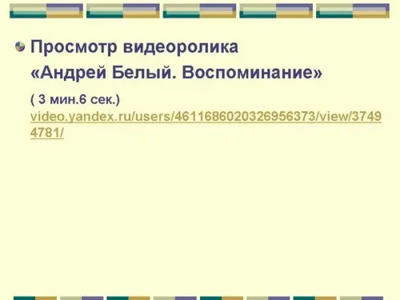 (Слайд 13). Просмотр видеоролика "Андрей Белый. Воспоминание"