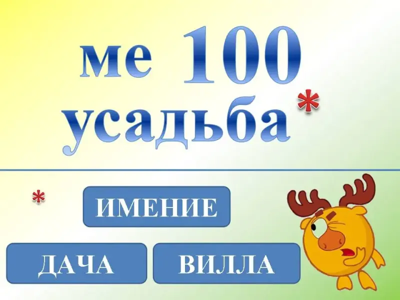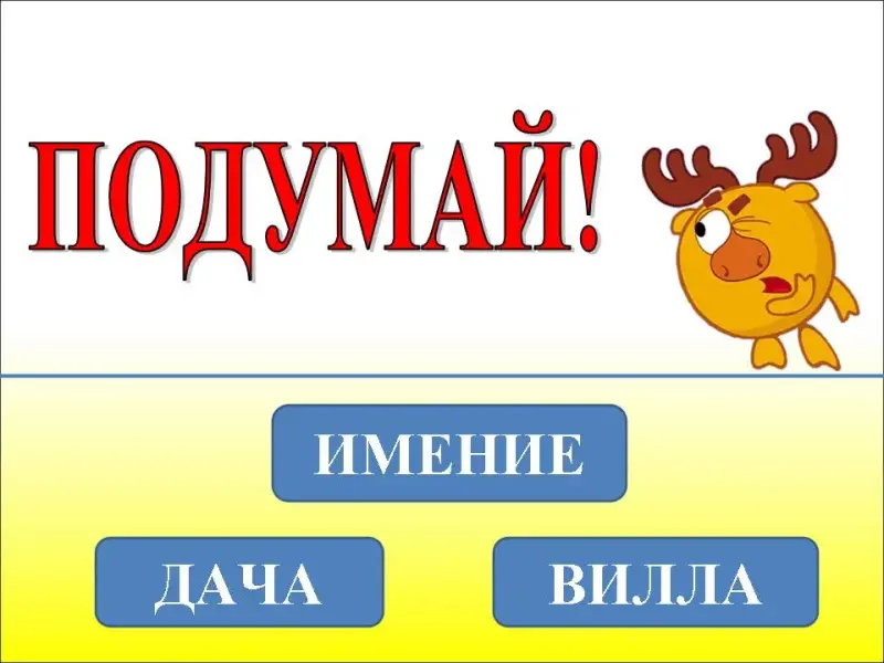Лосяш предлагает вам заменить слово усадьба, подходящим синонимом: вилла, имение, дача (Слайды 4-5).