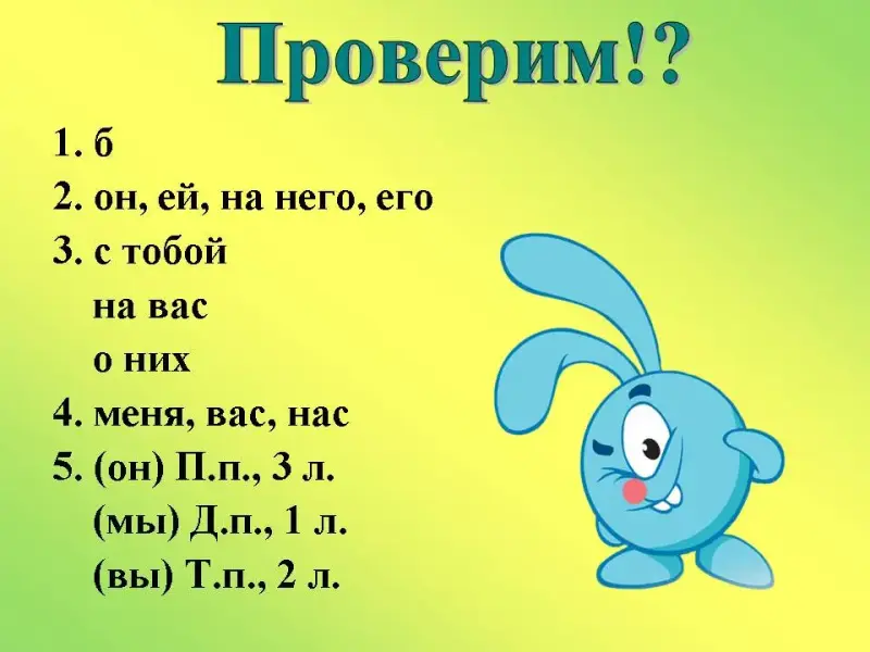- А сейчас мы проверим полученные знания о местоимении с помощью теста.