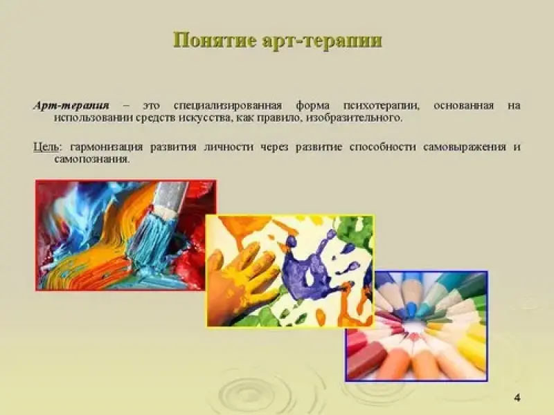 Арт-терапевтические упражнения служат средством свободного самовыражения и самопознания, они имеют "инсайт-ориентированный" характер; предполагают атмосферу доверия, внимания к внутреннему миру ребенка.