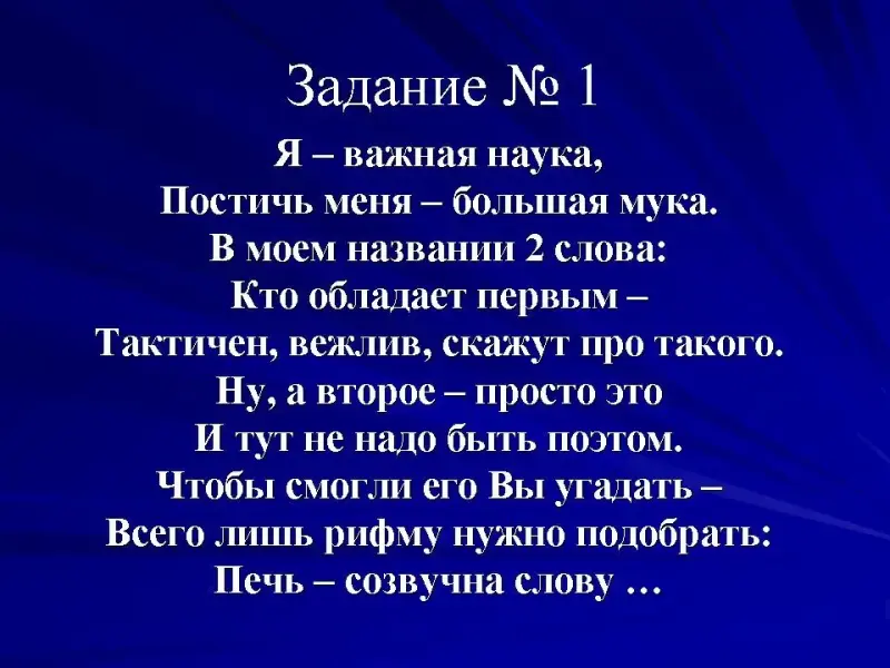 Преподаватель: 1 задание нашего урока-викторины: разминка. В качестве разминки предлагаю отгадать загадку.