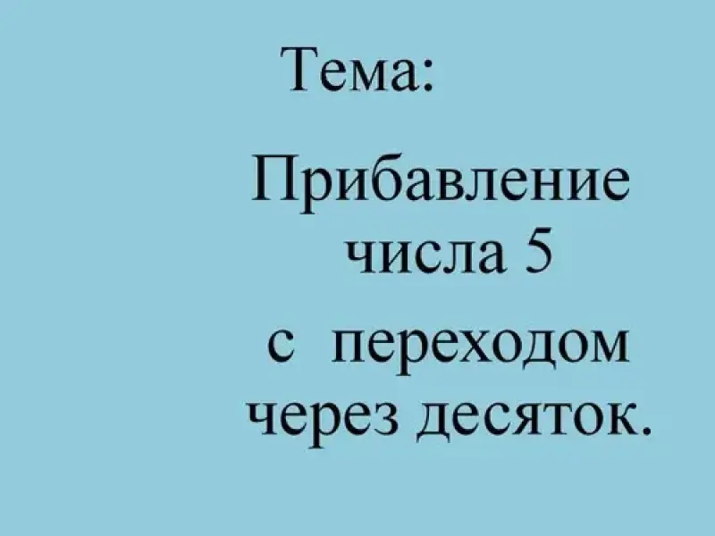 - Тема: Прибавление числа 5 с переходом через десяток. (слайд 1).
