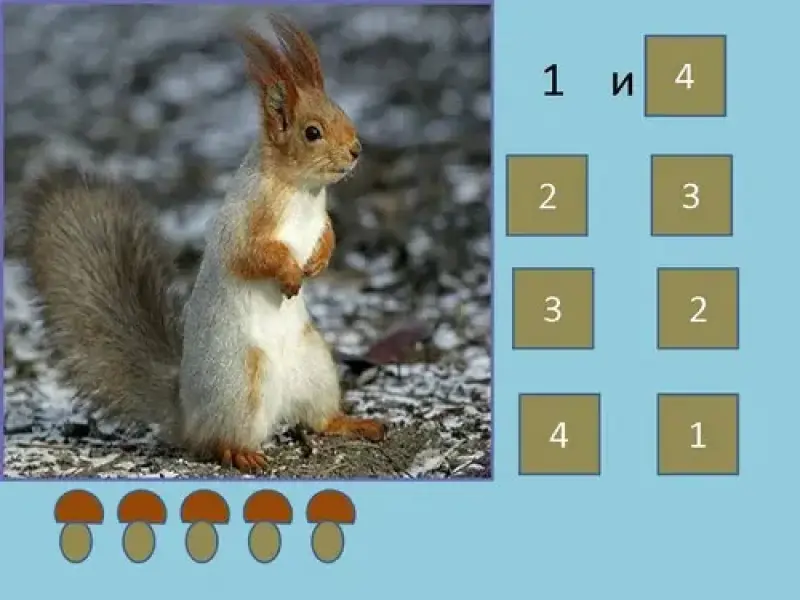 3) Сколько у белки грибов? (слайд 7). Как белка может спрятать их в два дупла?