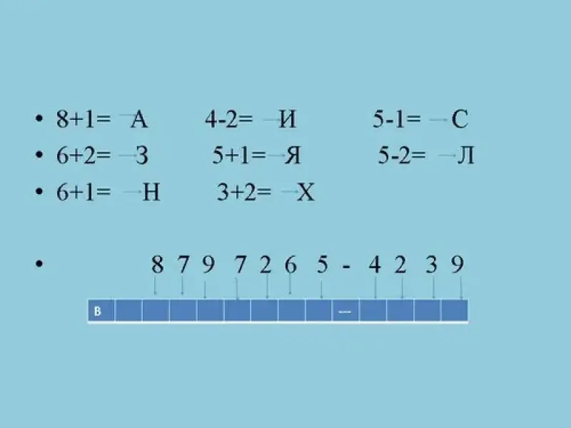 8+1= А 4-2= И 5-1= С 6+2= З 5+1= Я 5-2= Л 6+1= Н 3+2= Х