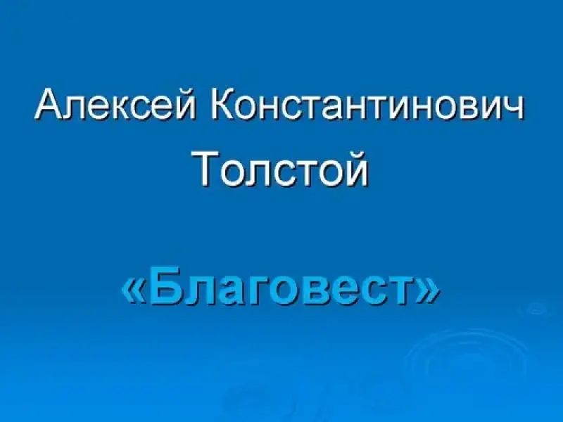 Учитель. Кроме любви к Родной Земле, у Толстого наблюдается влечение к "мирам иным" как отражение неких "вечных идей". Программные стихотворения Толстого - именно об этом. С одним из них мы познакомились в 7-м классе. Это лирическая миниатюра "Благовест". Стихотворение - знакомо, для памяти - тексты.