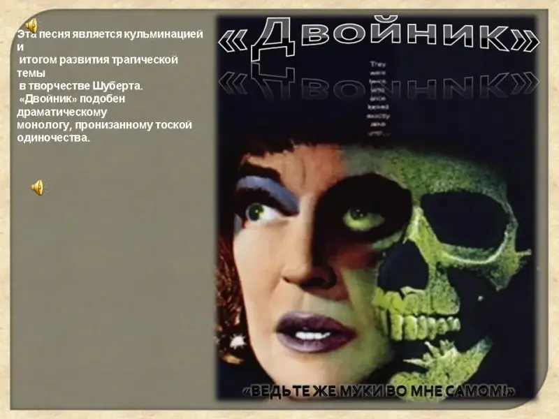 «Двойник», начинающийся как суровое повествование и завершающийся взрывом безудержного отчаяния. Его мелодика основывается на декламационно-речевых оборотах - приглушенных, часто обрывающихся паузами.