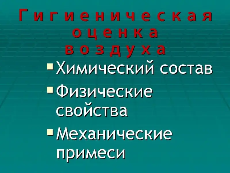 Воздух в помещениях оценивают по следующим гигиеническим показателям:
