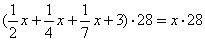 − Вот сколько, − ответил учитель, − половина изучает математику, четверть − природу, седьмая часть проводит время в размышлении, и, кроме того, есть ещё три женщины.