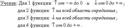 Учитель: Используя заданную функцию, определите ее промежутки возрастания и убывания.