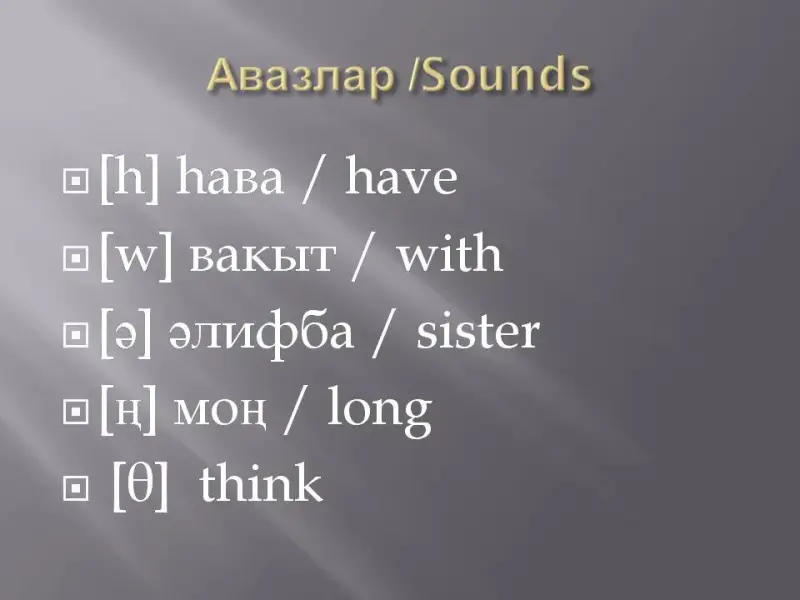 - һава, әни, әти, әби, әлифба, вакыт.