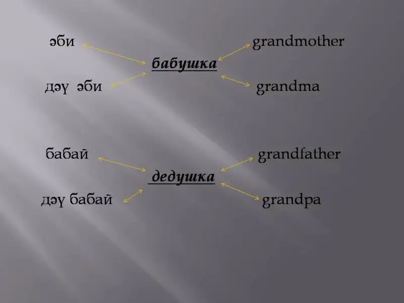 | бабай | grandpa | әби | grandma | |||
