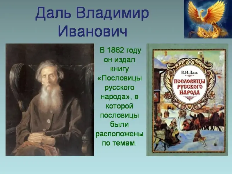 - Русские народные пословицы собирались и записывались многими писателями. Были изданы сборники пословиц и поговорок. Большим знатоком и собирателем русских народных пословиц был В.И.Даль. В 1862 году он издал книгу «Пословицы русского народа», в которой пословицы были расположены по темам.