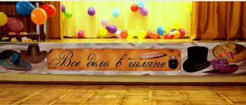 В день проведения мероприятия зал украшен разноцветными головными шарами в разных головных уборах.