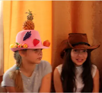 А теперь мы просим выйти на подиум девочек для демонстрации головных уборов в номинации «Самая большая шляпа» (звучит музыка).