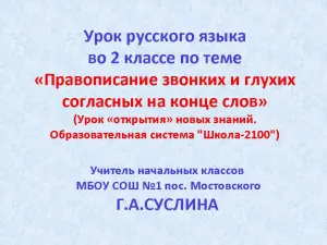Урок русского языка по теме "Правописание звонких и глухих согласных на конце слов". 2-й класс