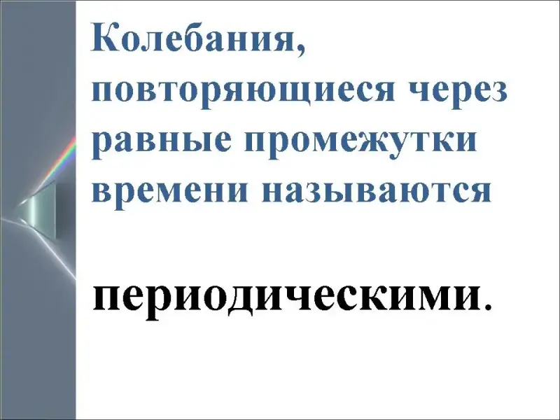 Промежутки времени, через который процесс повторяется, называется периодом колебаний. И основной признак таких колебаний периодичность, т.е. повторяемость.