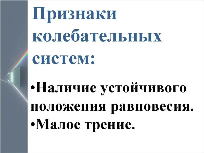 - Появляется сила внутри системы, возвращающая тело в положение равновесия.