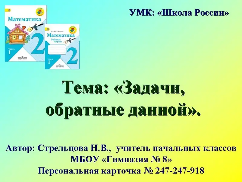Задачи, обратные данной. 2-й класс