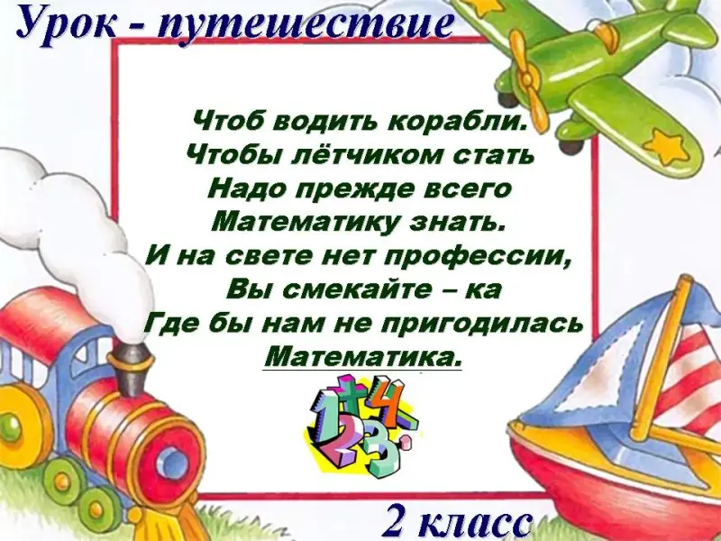 - Мы сегодня с вами хорошо поработали, и я считаю, что из вас должны получиться хорошие и летчики и капитаны и вы сможете для себя выбрать любую другую нужную профессию. Математические знания важны для всех сфер деятельности.