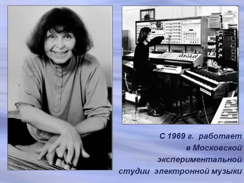 композитора в эту лабораторию электронной музыки. Работая рука об руку с Э. Денисовым, А. Шнитке, Э. Артемьевым, София Губайдулина экспериментировала с электронными тембрами и написала единственную