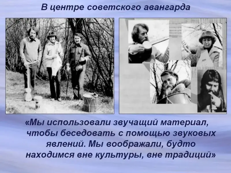 композиторов авангардного направления. Музыка этих композиторов не исполнялась нигде, так как была официально запрещена. К 1991 году четверо из семи, в том числе и Губайдулина, покинули Россию.
