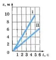 По графикам зависимости путей от времени двух тел, движущихся равномерно, определите скорости этих тел. Скорость какого тела больше?