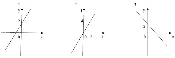 А. S = 2t Б. у = х + 2 В. S = - 2t Г. у = - х + 2