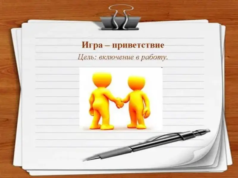 Каждый участник готовит себе визитку, пишет, как он хотел, чтоб его называли во время тренинга.