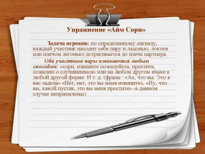 9. Упражнение "Айм Сори" (Слайд №13)