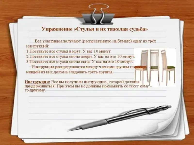 11. Упражнение "Стулья и их тяжелая судьба" (Слайд №15)