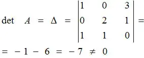 Решение. Прежде всего вычислим определитель матрицы A, чтобы убедиться в возможности существования обратной матрицы.