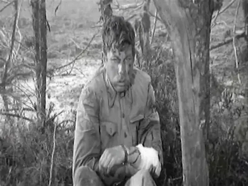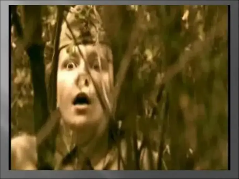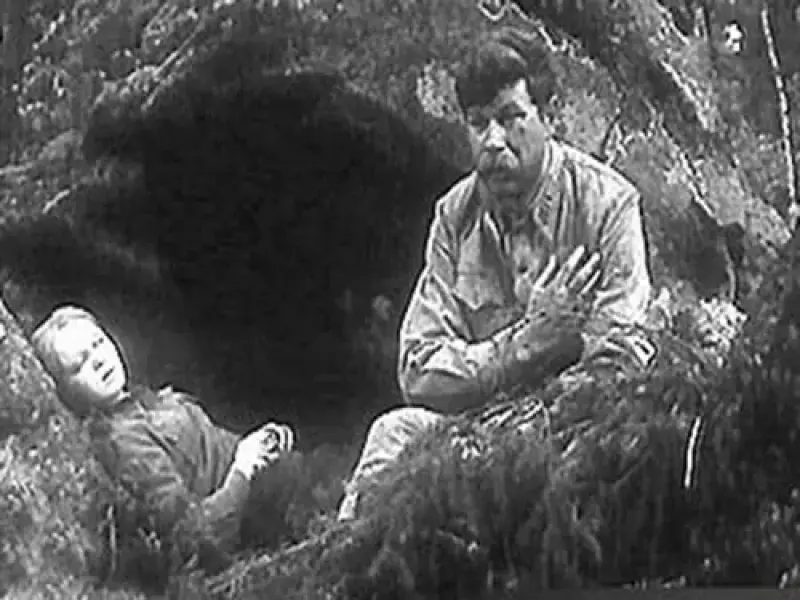 "Расцветали яблони и груши..." (песня прерывается автоматной очередью).