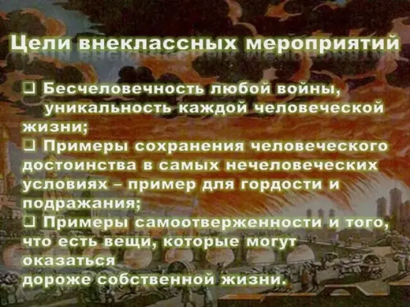 Цель: показать ценность человеческой жизни, связь прошлого и настоящего.