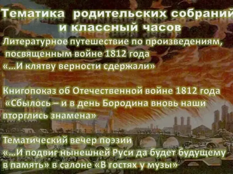 Объединившись вместе со школьным библиотекарем и предварительно собрав информацию у учителей истории и литературы, краеведов, провести классный час, родительское собрание в библиотеке. Классный час или родительское собрание в виде экскурсии в мир художественной, справочной, публицистической литературы будет весьма актуально.