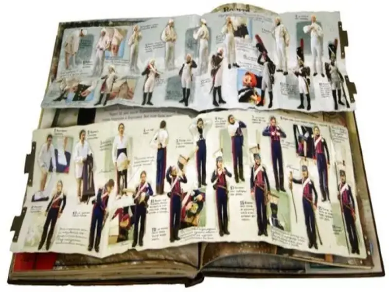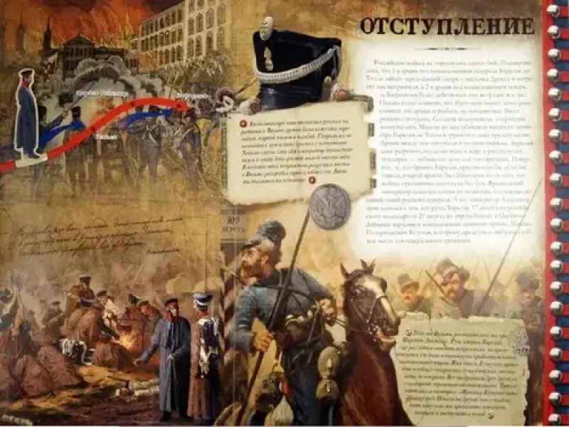 Дополнительные материалы: оригинальные объемные конструкции, панорамные страницы, клапаны, книжечки, карты, схемы сражений, ...