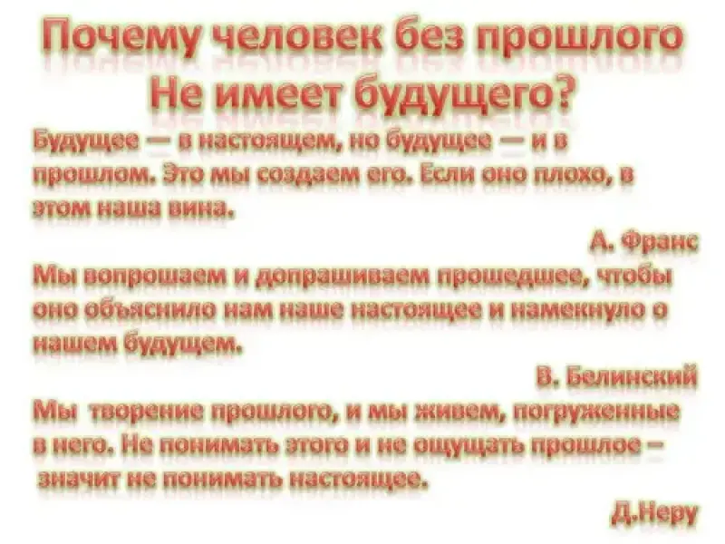 - Мы вопрошаем и допрашиваем прошедшее, чтобы оно объяснило нам наше настоящее и намекнуло о нашем будущем. В. Белинский