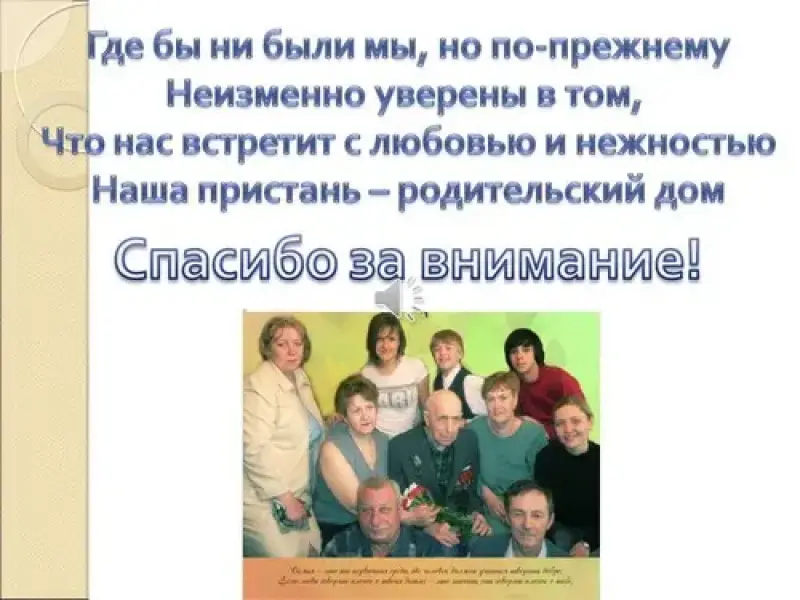 (Предложить участникам собрания вместе спеть песню "Родительский дом")