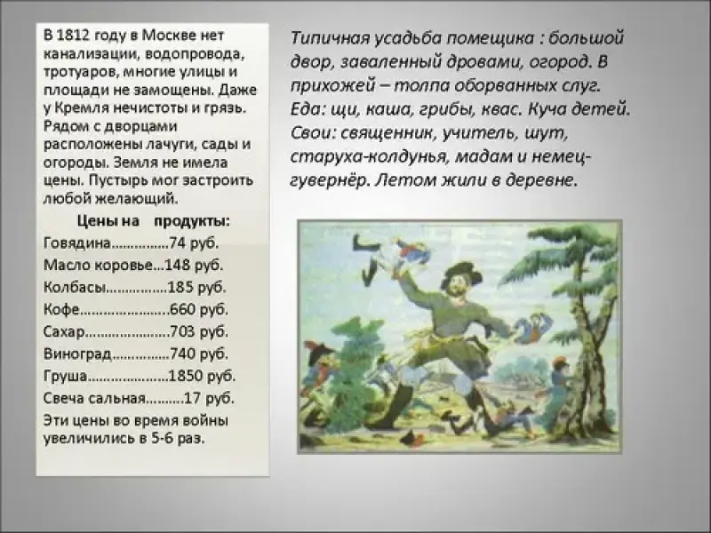 И хотя гнев к французам оказывался избирательным, ведь французская мода и язык были в том же почёте (Слайд №13,14) , а французские актёры выступали на русской сцене, изгнание врага было заветной мечтой каждого. Это будоражило умы и сердца, и одни брались за перо, другие - чертили схемы летательного корабля, который будет бомбить врага. Слайд №15.