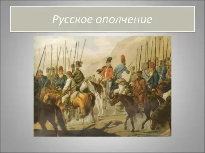 Вторжение неприятеля в пределы России, кульминационное Бородинское сражение, пожар Москвы, напряженная борьба с армией Наполеона вызвали могучий подъём в народе. Слайд №2.