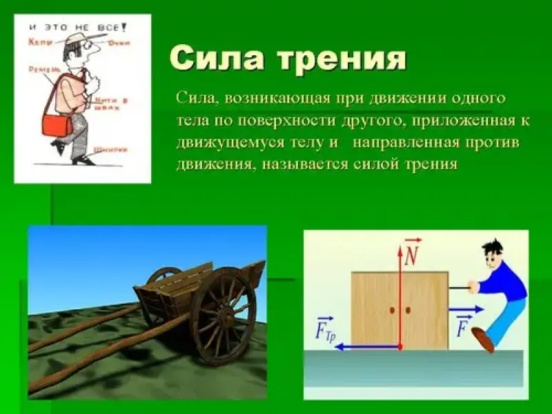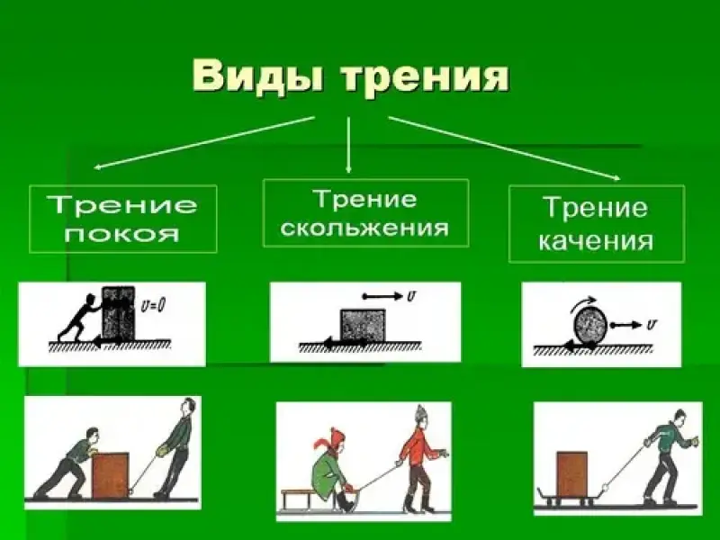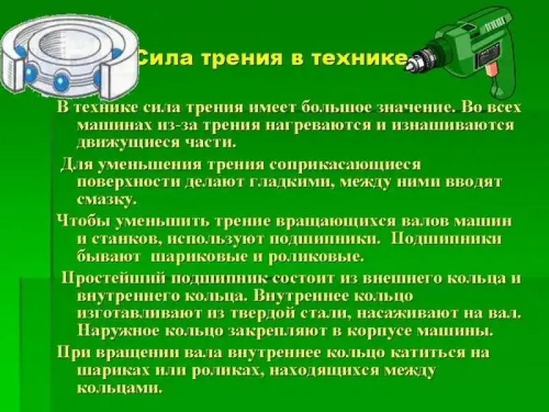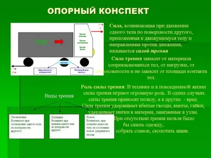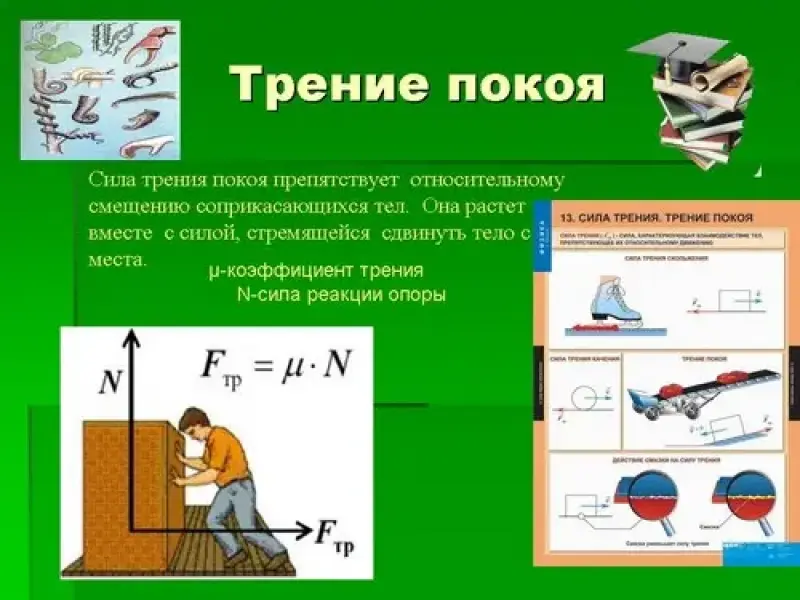 Сила трения, сила трения покоя, сила трения скольжения, сила трения качения, коэффициент трения, польза, вред, применение в жизни.