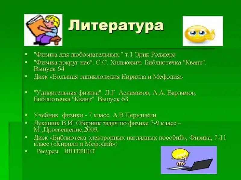 - Перышкин А.В .Физика 7 класса. М: Просвещение, 2008 г.