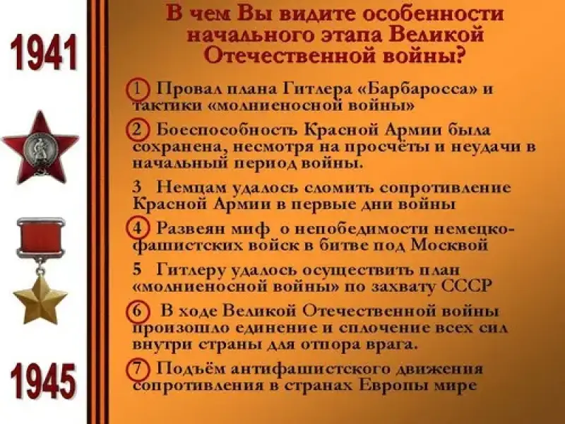 В чем вы видите особенности начального этапа Великой Отечественной войны? Слайд 5